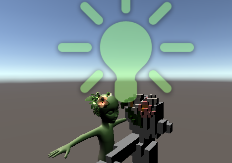 4차샘플 이미지 속에 보이는 녹색 캐릭터는 추가 포인트 조명에 물들었는데, voxel덩어리는 물들지 않은 이유이다.